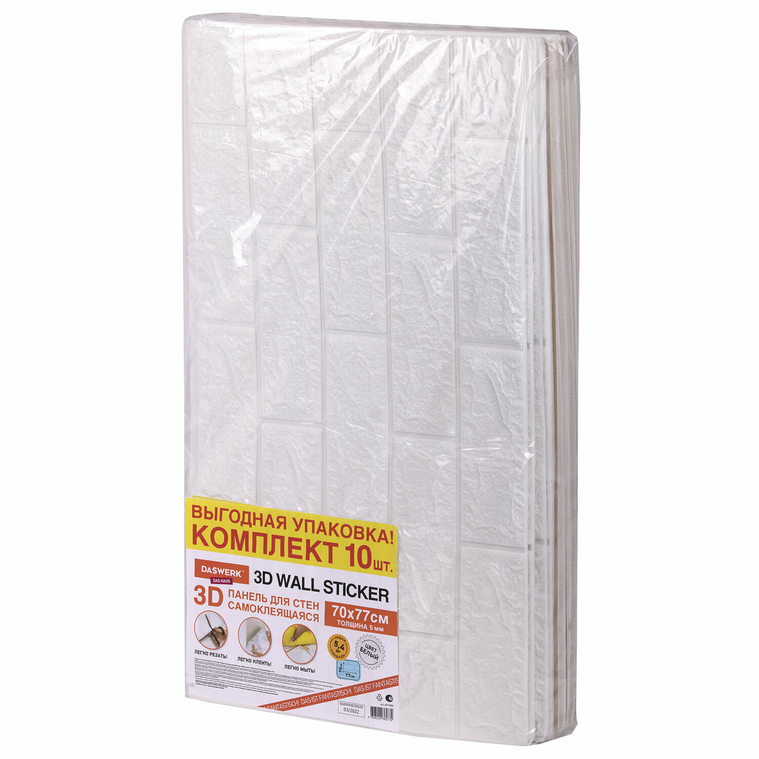 Панели для стен / стеновые панели 3D самоклеящиеся, "Белый кирпич", 10шт, 70х77см, DASWERK, 607988