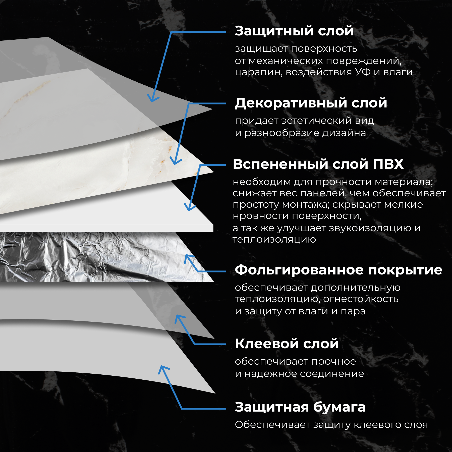 Небесный мрамор, 60х30 см плитка глянцевая, самоклеющиеся панели для стен, декор для дома на кухню, в ванную (арт. 910) 6 шт.