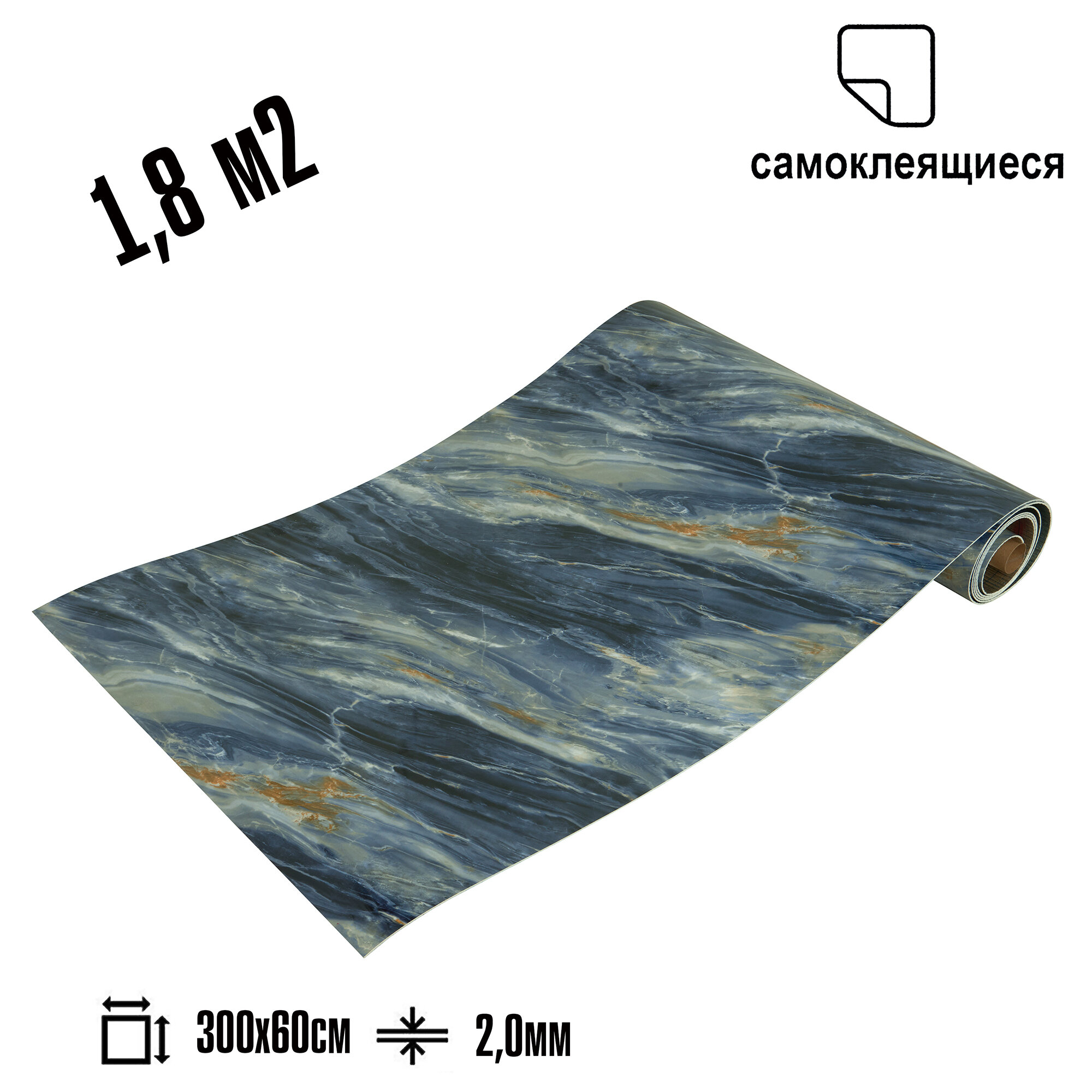 Самоклеящаяся ПВХ плитка рулон LAKO DECOR "Мрамор Алтея" толщина 2мм 1,8м² 60х300 см