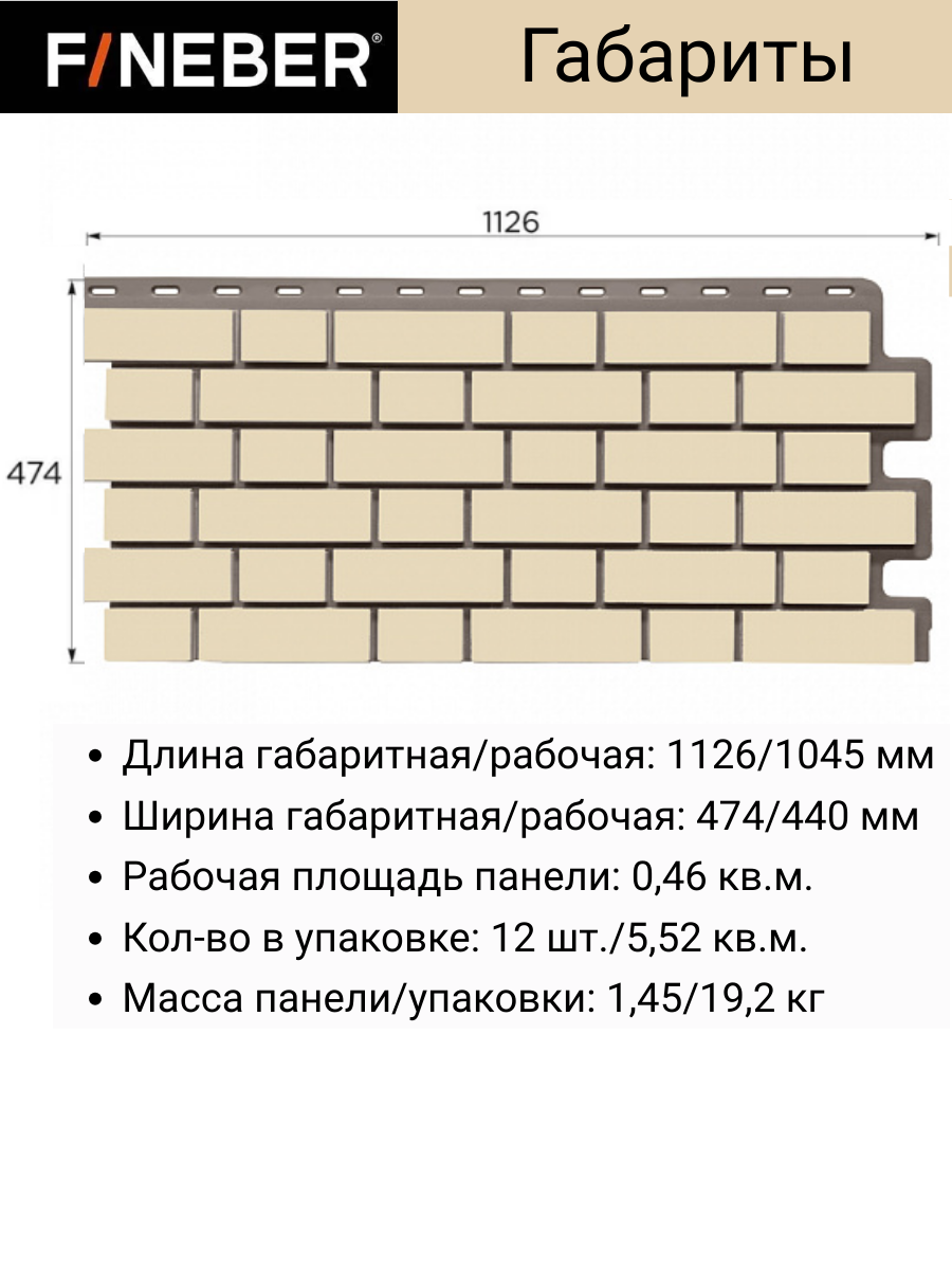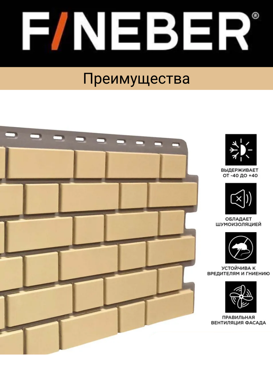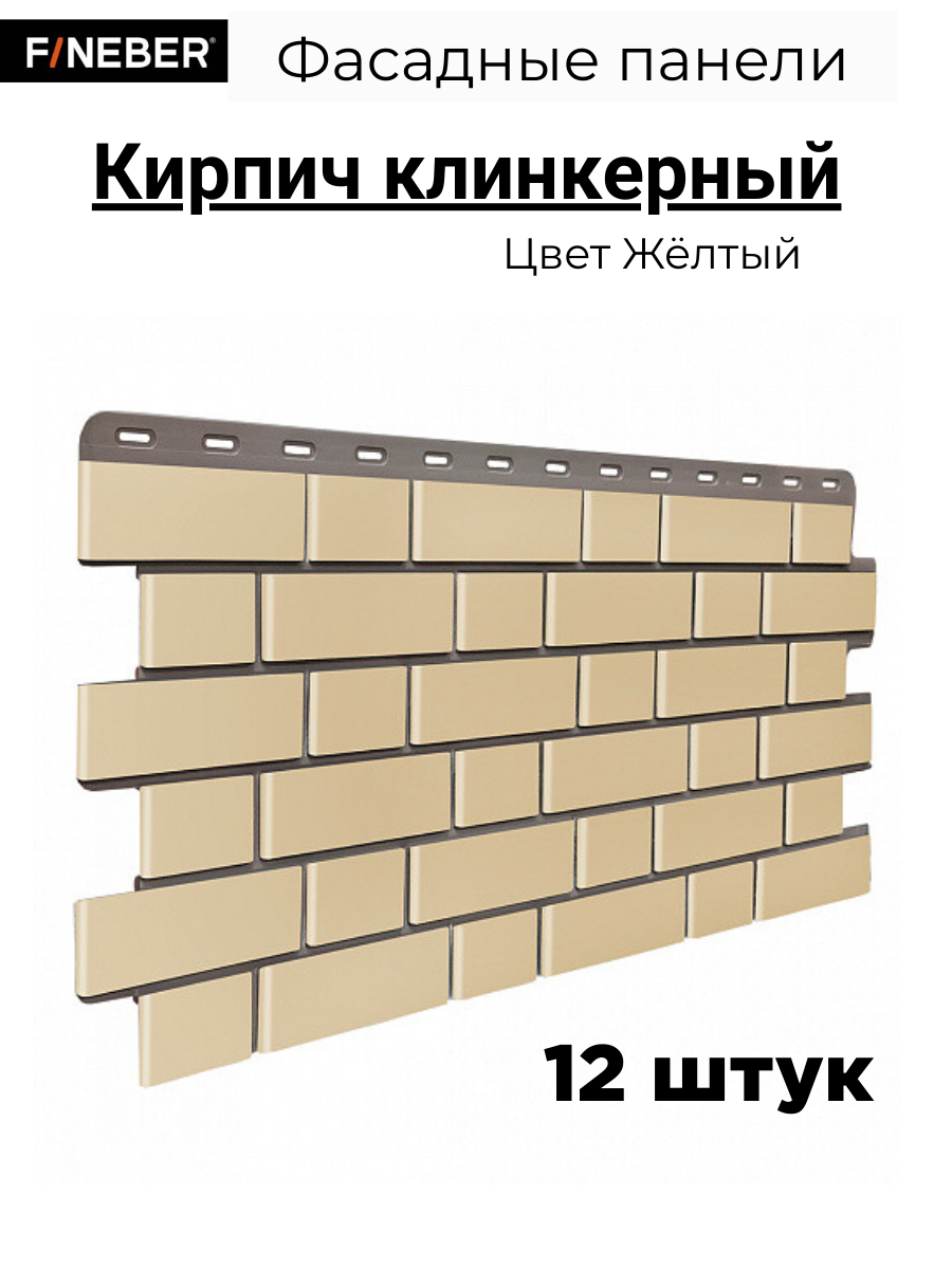 Фасадная панель Fineber "Кирпич клинкерный", желтый, полипропилен, 1126x474x12 шт интересное: