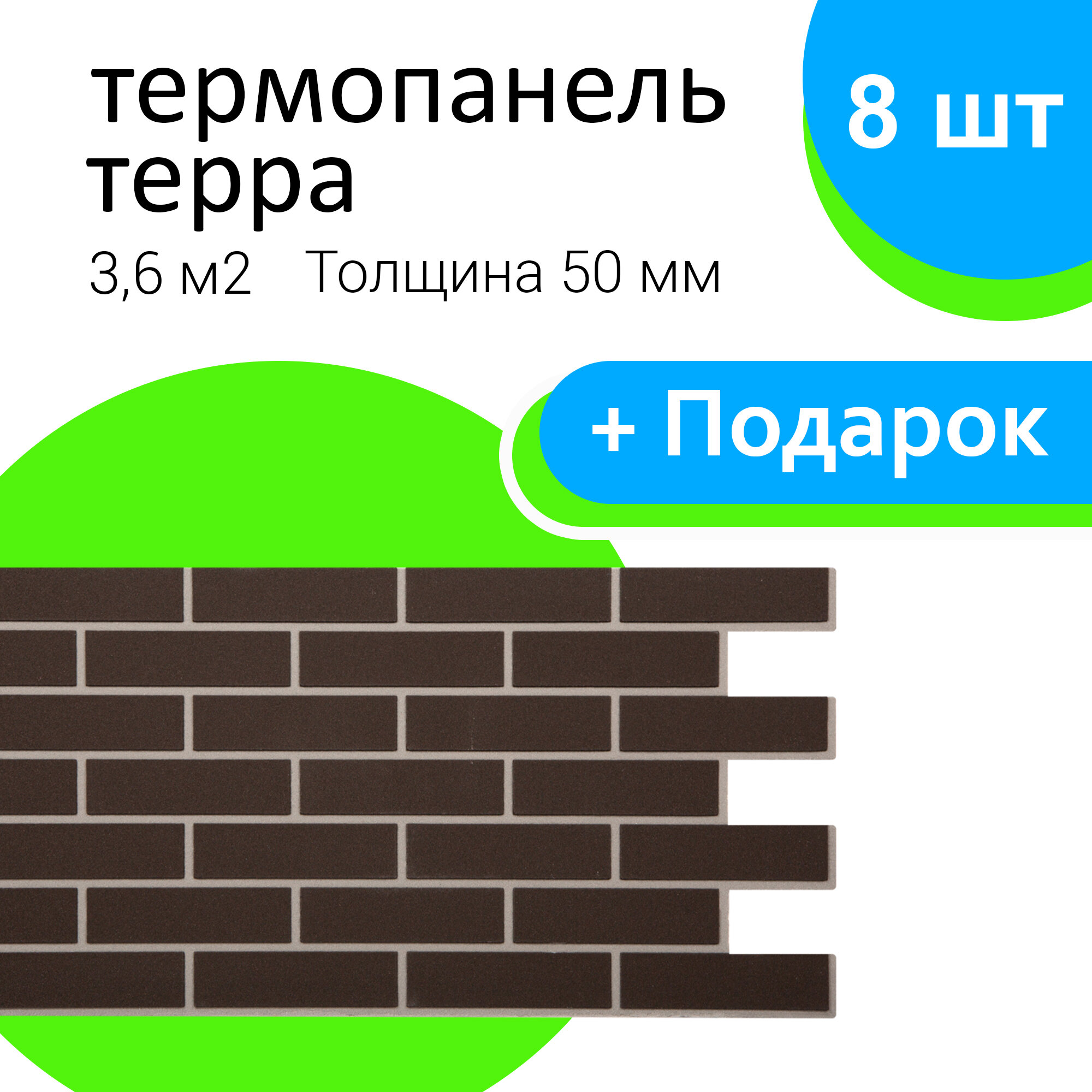Купить Фасадная термопанель ООО СТЗ "Терра", цвет коричневый, 8 штук, 50x1035x490мм