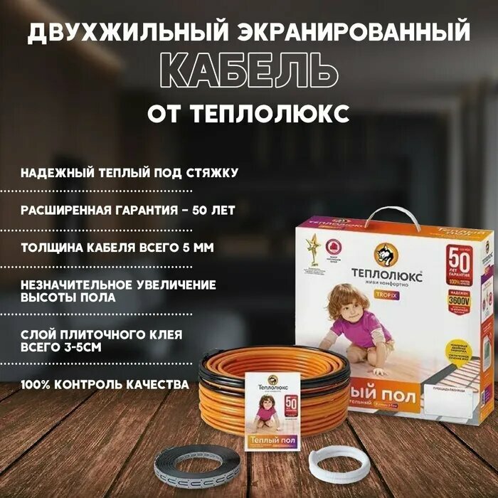 Теплолюкс Тропик кабель нагревательный 800Вт/40,5м / TEPLOLUXE Tropix ТЛБЭ теплый пол кабель нагревательный 800 Вт/40,5м