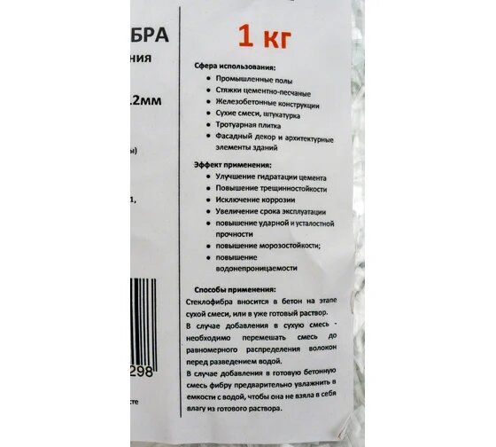 Стеклофибра 10 кг, добавка в раствор, упрочнитель бетона