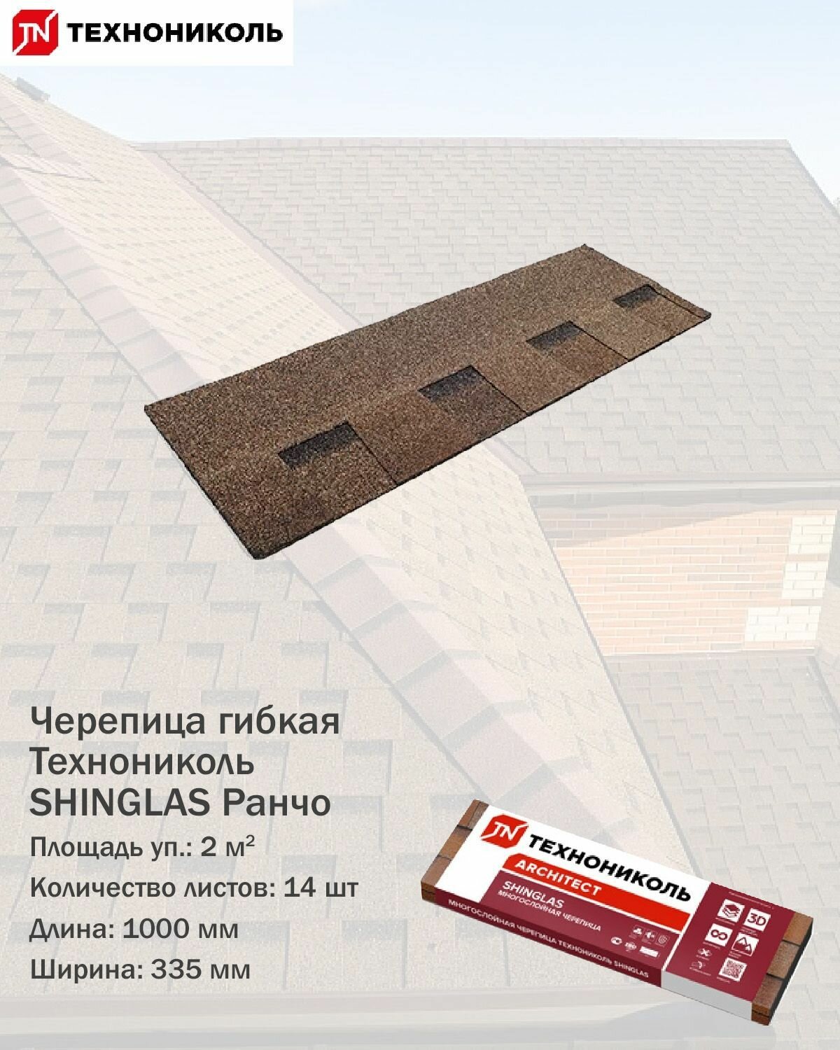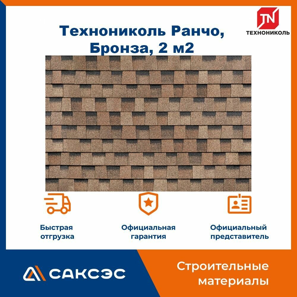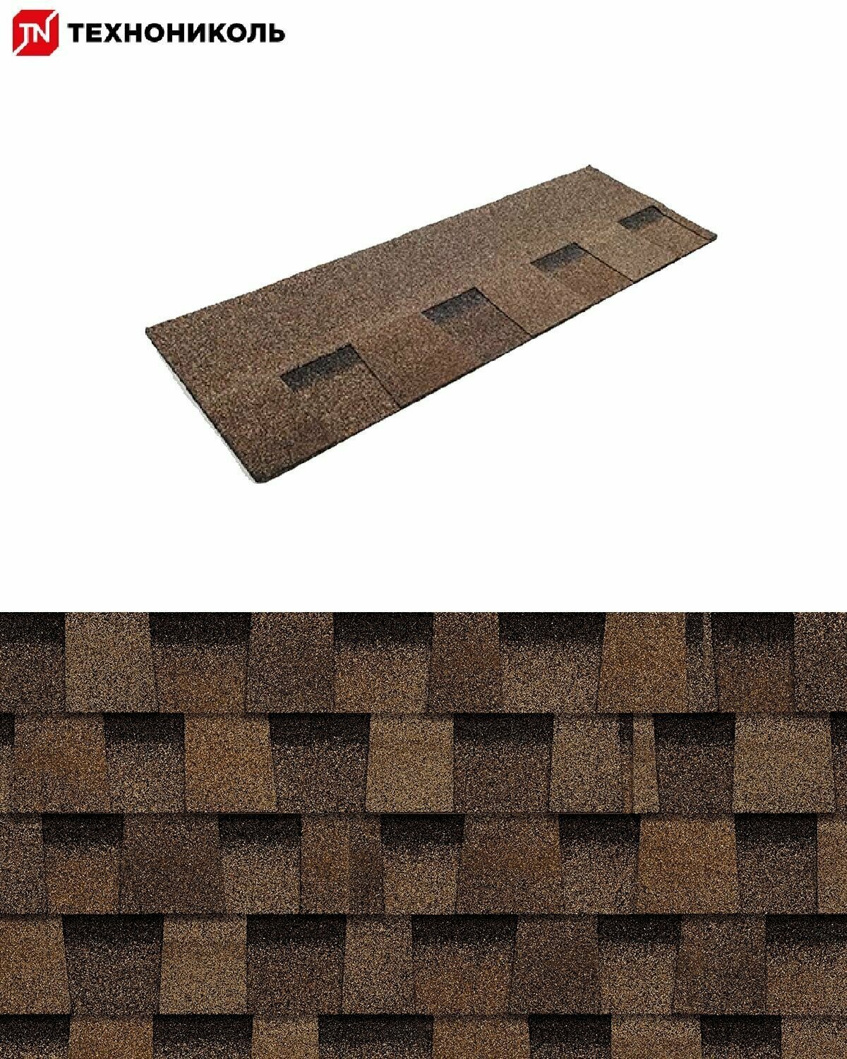 Гибкая черепица Технониколь Shinglas Ранчо, Коричневый, 2 м2 / Мягкая кровля Шинглас / Битумная черепица Ранчо