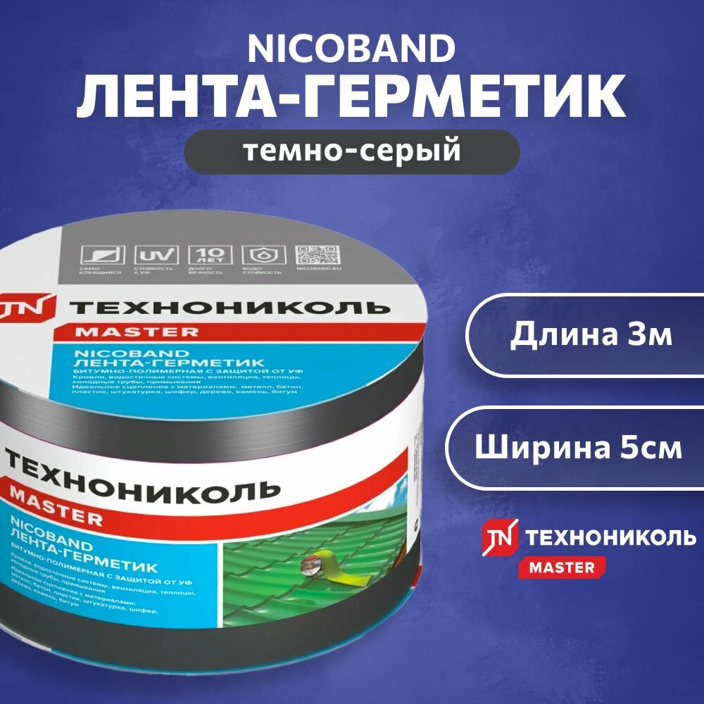 Купить Самоклеющаяся герметизирующая лента ТехноНиколь NICOBAND д:3м,ш:5см, темно-серый