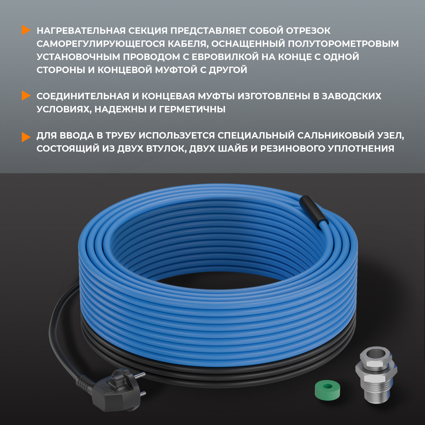 | Вид комплектующего | вилка / греющий кабель / муфта / сальник |