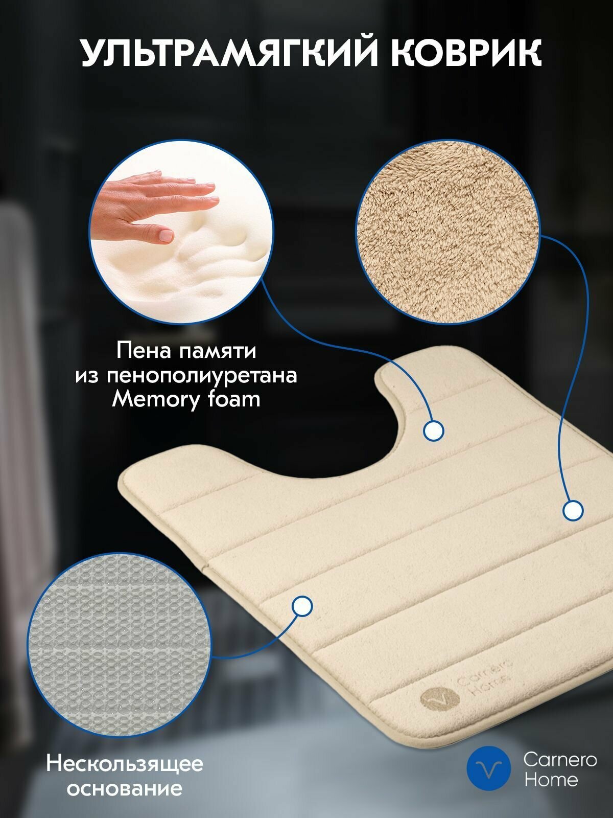 Коврик для ванной и туалета из пены памяти формы 50х80 см, Carnero Home