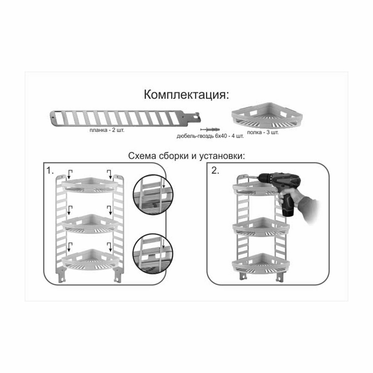 Полка в ванную угловая Альтернатива Трансформер 3-х ярусная, 25 x 18 x 58 см, белая