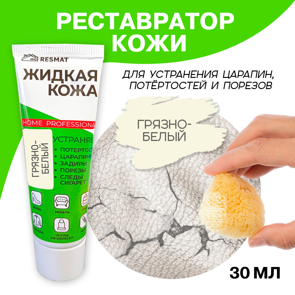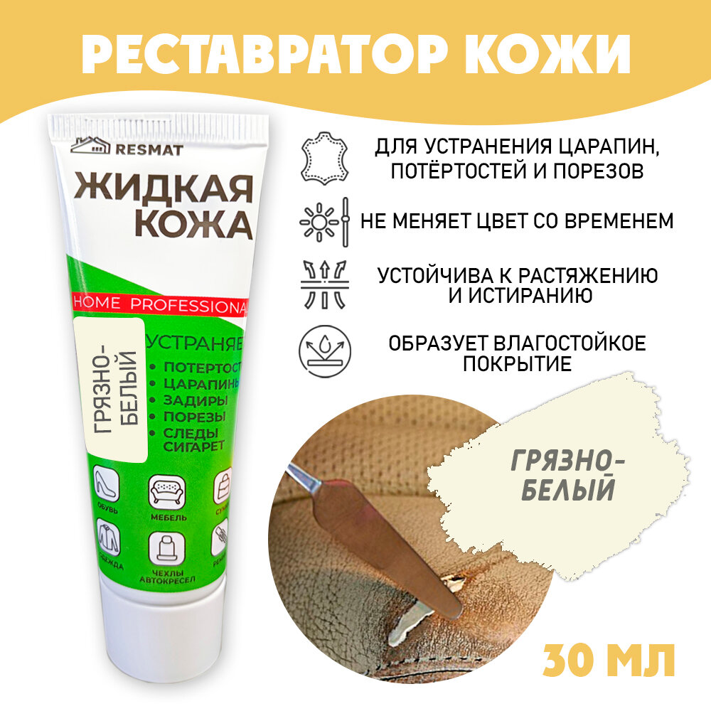 Жидкая кожа для мебели, одежды, восстановитель кожи Resmat 30 мл в тубе, грязно-белая