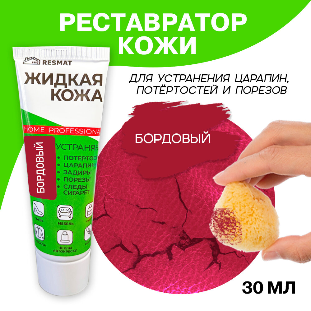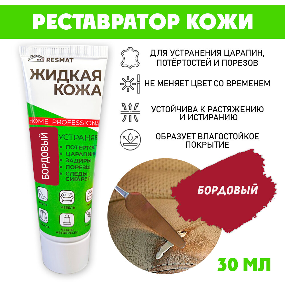 Жидкая кожа для мебели, одежды, восстановитель кожи Resmat 30 мл в тубе, Бордо