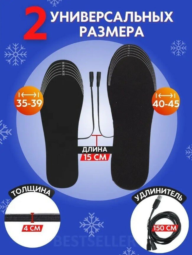 | Дополнительная информация | Стельки с USB подогревом для мужчин и женщин, Стельки с электрическим подогревом, черные, теплые зимние стельки |