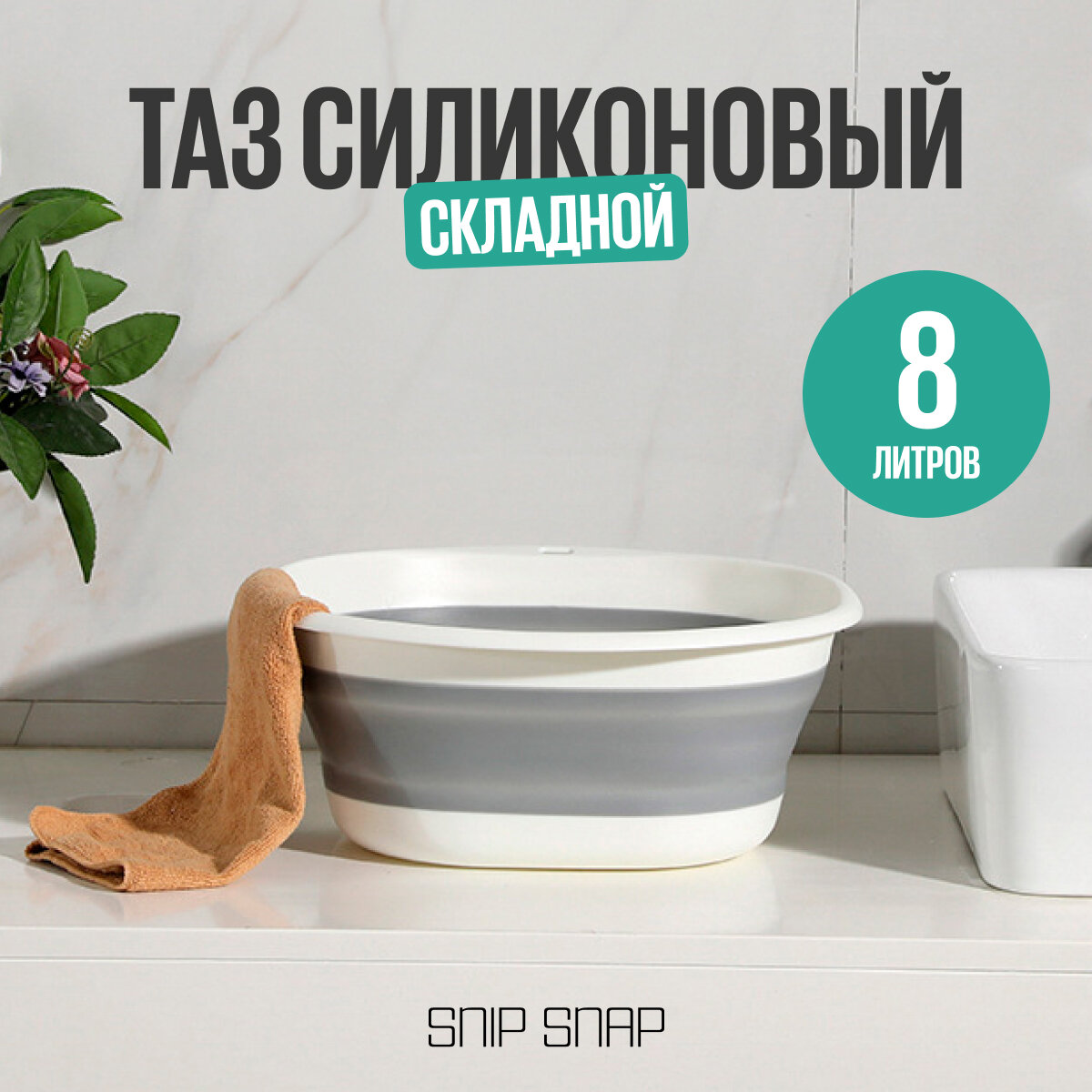 Таз SNIP SNAP, силиконовый, складной, цвет серый, 8 л интересное: