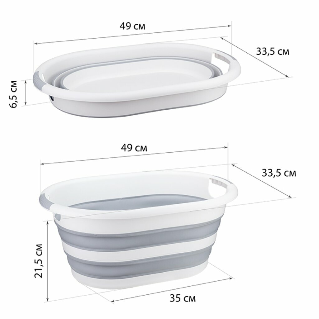Таз складной IDEA «Флекс», 17.5 л, 33.5×49×6.5 см, серый