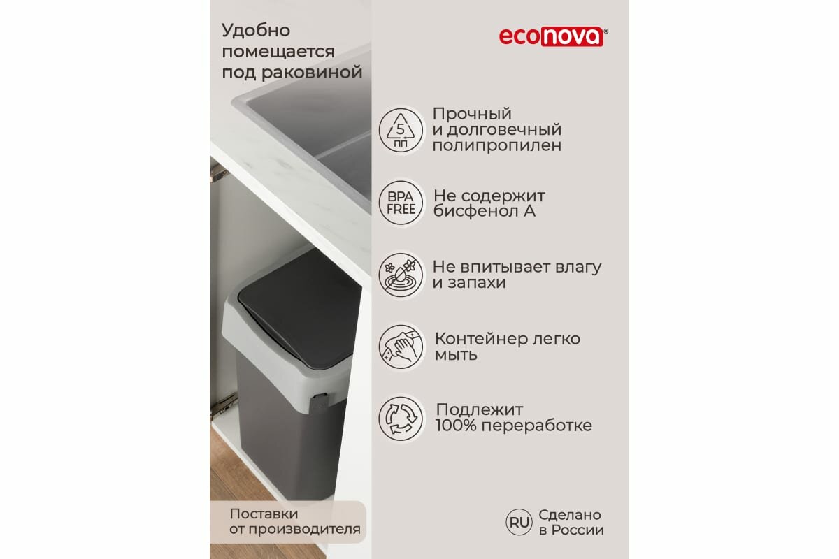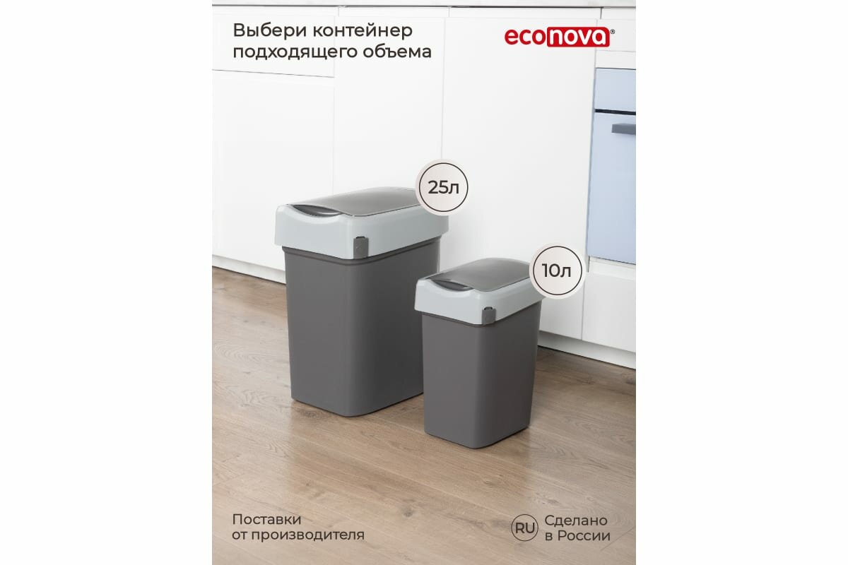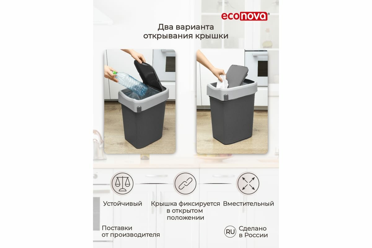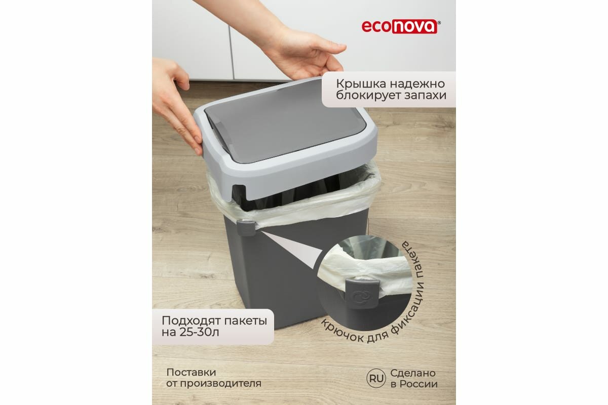 Купить Мусорное ведро 25 литров Econova для кухни, туалета, офиса, с крышкой, напольный контейнер для хранения мусора, пластиковый, узкий, прямоугольный (серый)