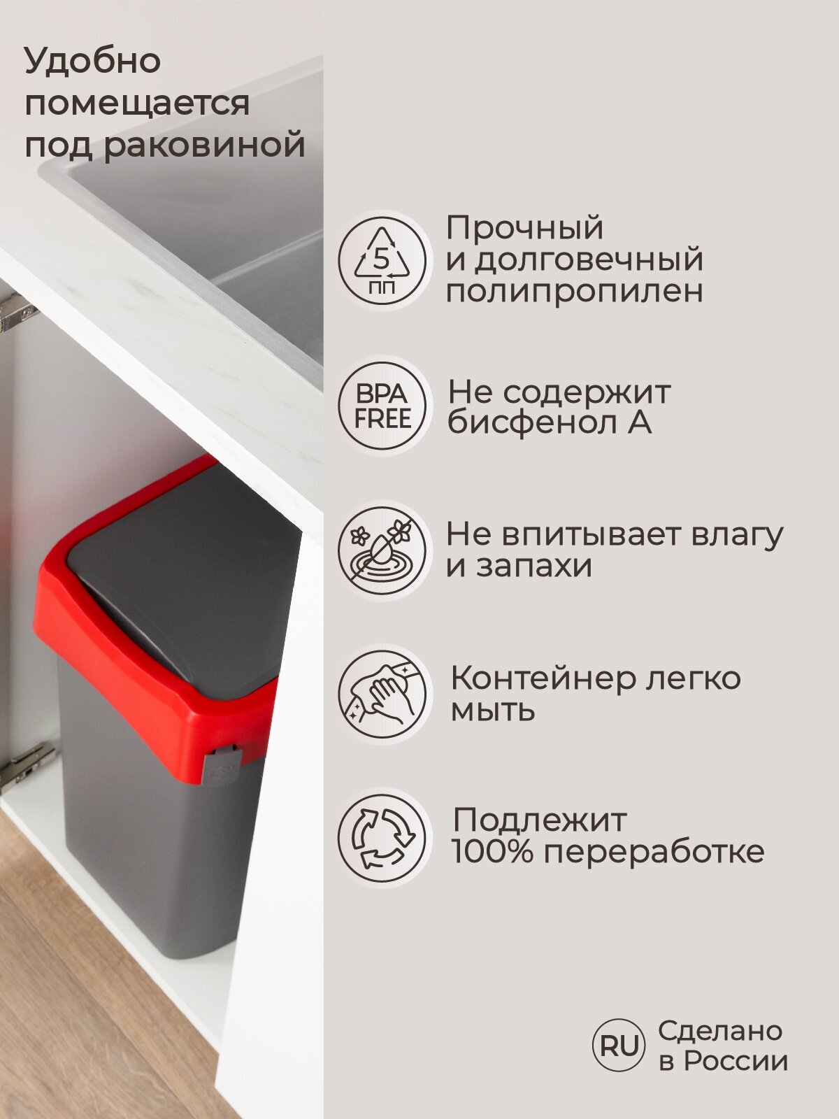 Контейнер для мусора "Smart Bin" 10л красный/серый