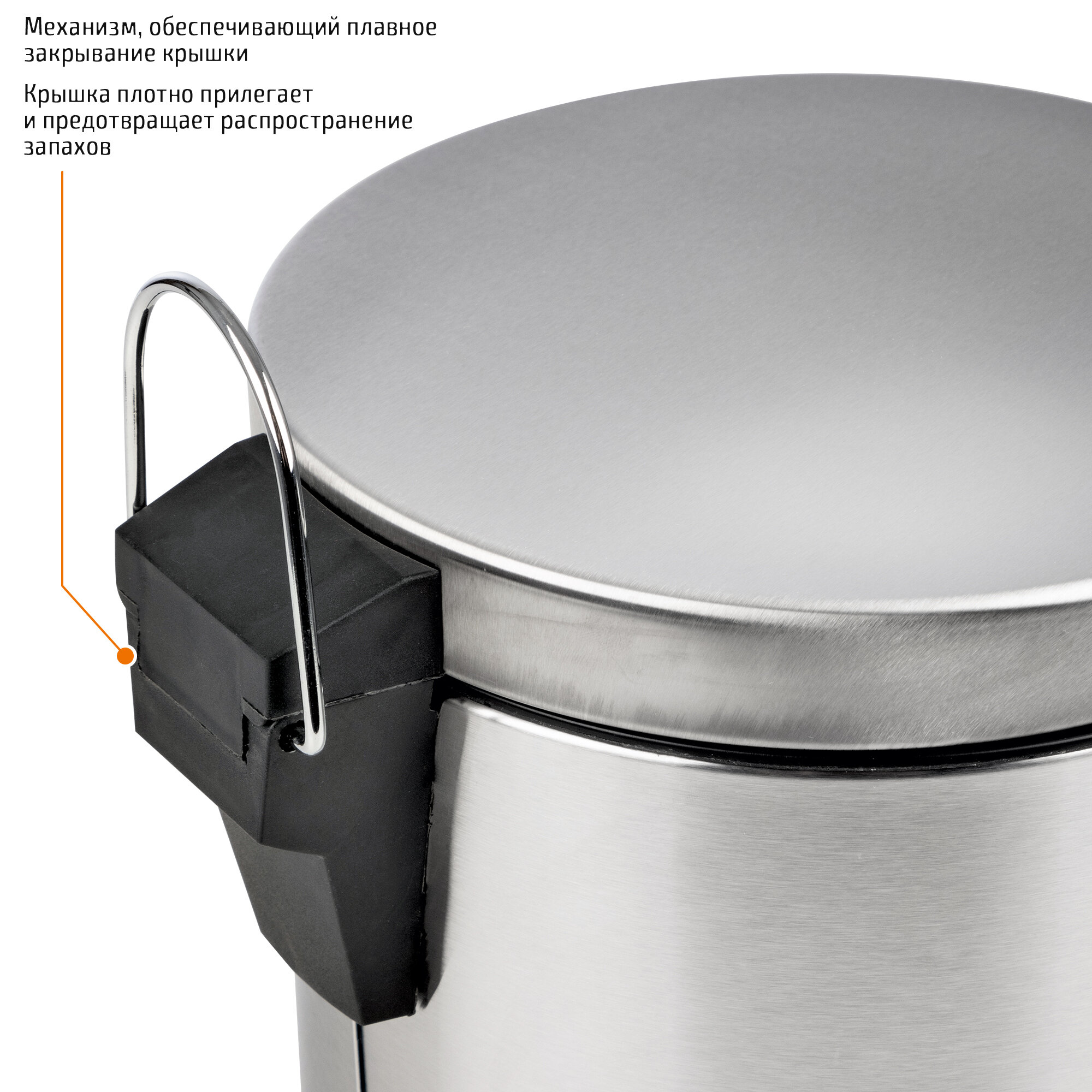 | Дополнительная информация | Ведро выполнено из нержавеющей стали, что обеспечит защиту от ржавчины и прослужит длительное время. Модель удобна при использовании и обладает педалью для открытия крышки. |