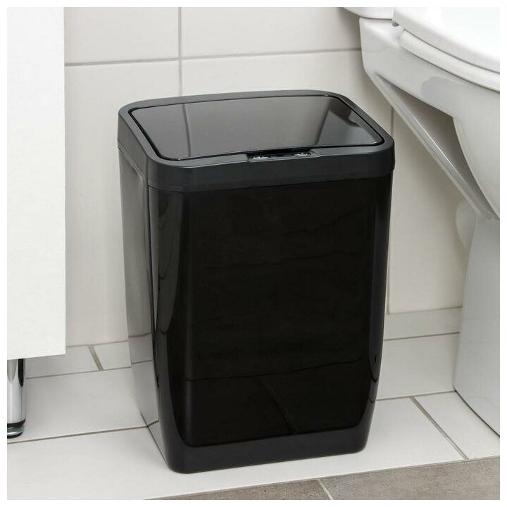 Ведро для мусора сенсорное Доляна, 12 л, пластик, цвет чёрный