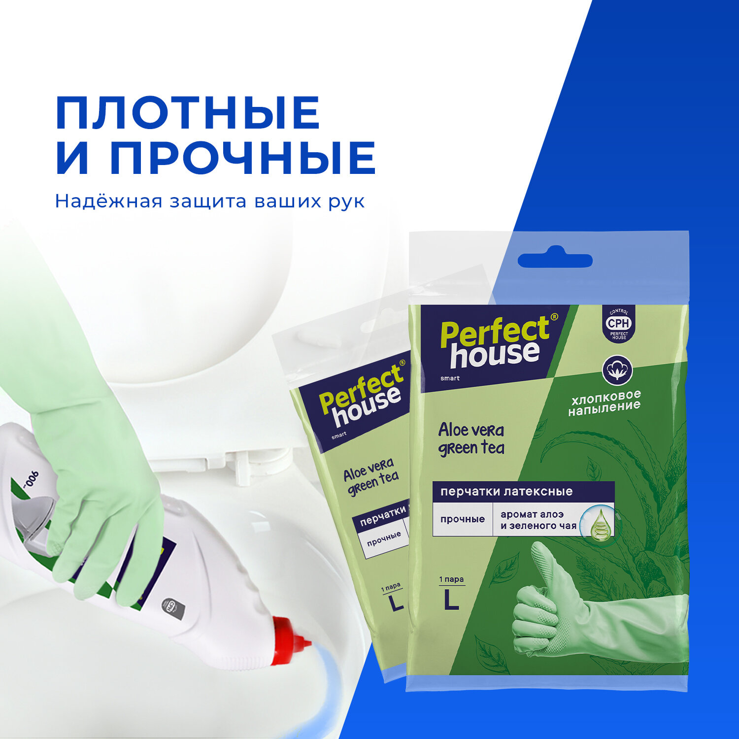 Купить Перчатки хозяйственные Perfect House Aloe vera green tea, L, 2 шт