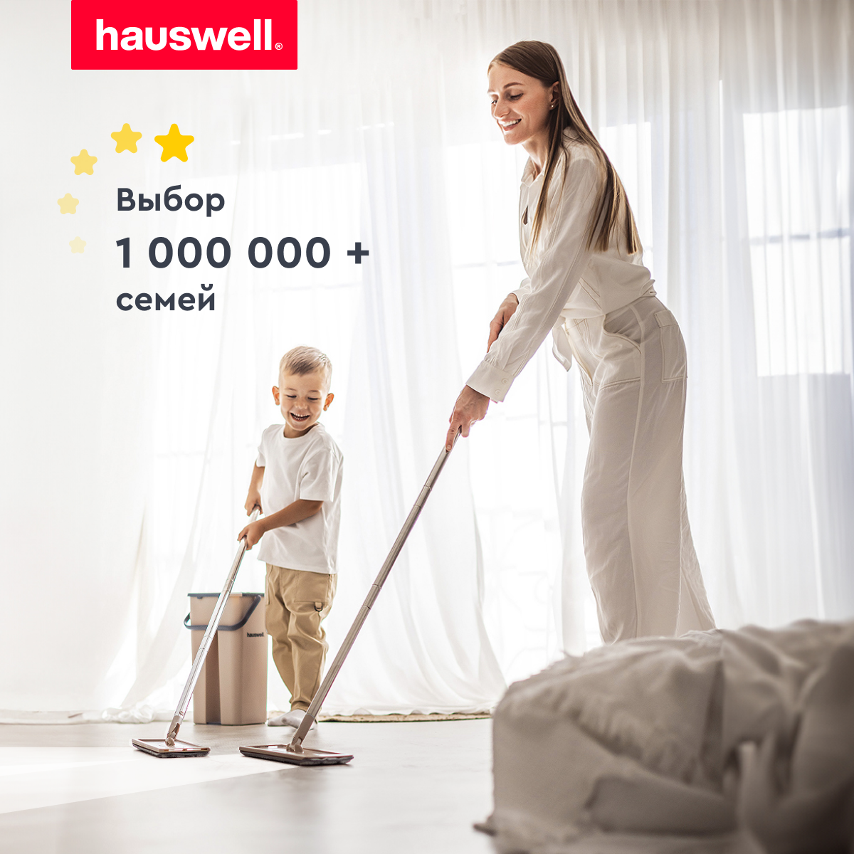 Швабра c отжимом и ведром Hauswell Smart Mop, белая, 3 насадки
