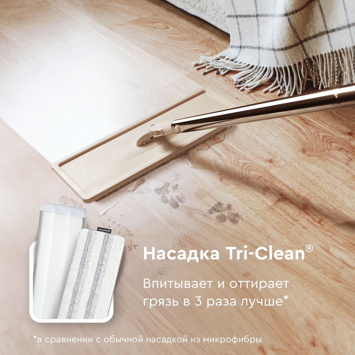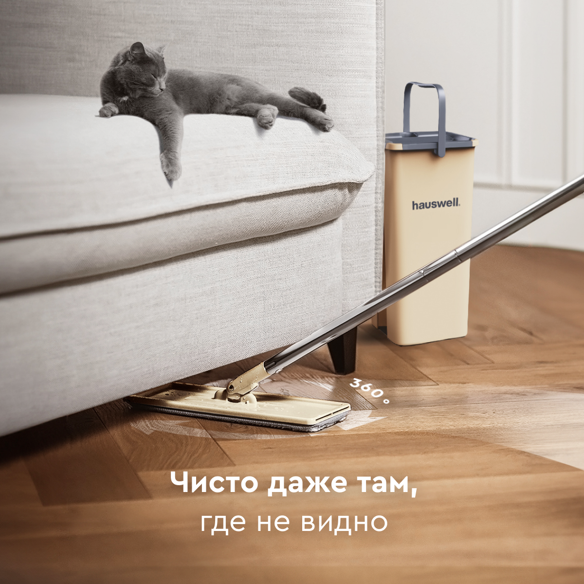 Купить Швабра c отжимом и ведром Hauswell Smart Mop, бежевая, 3 насадки
