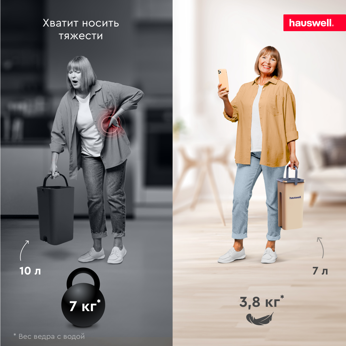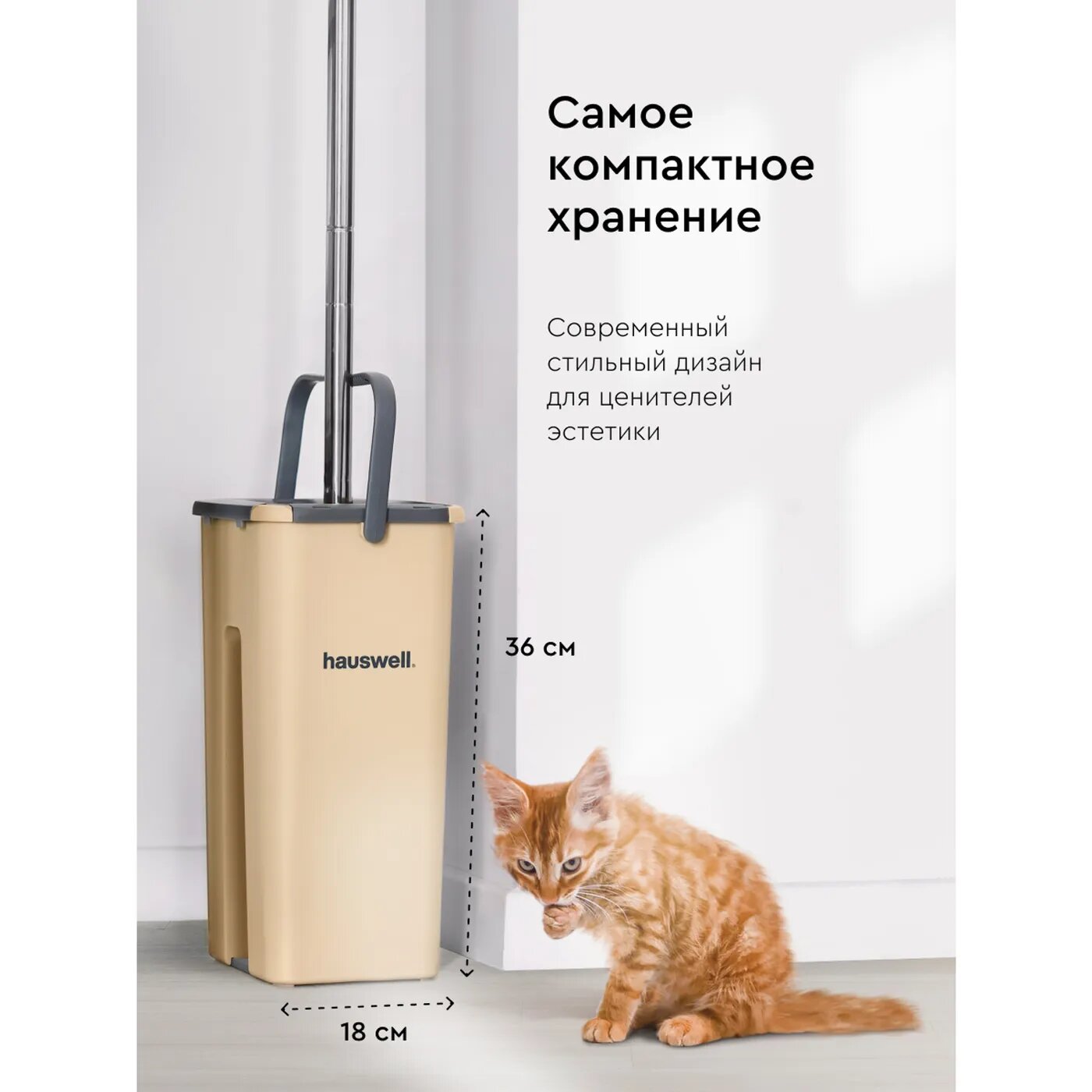 Швабра c отжимом и ведром Hauswell Smart Mop, бежевая, 1 насадка
