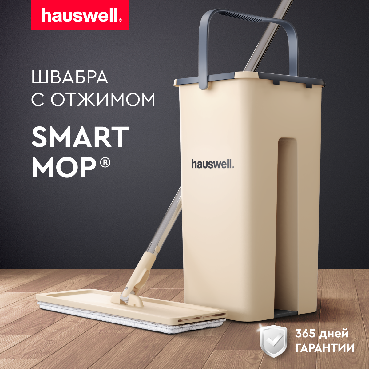 Швабра c отжимом и ведром Smart Mop Hauswell 7л, бежевый