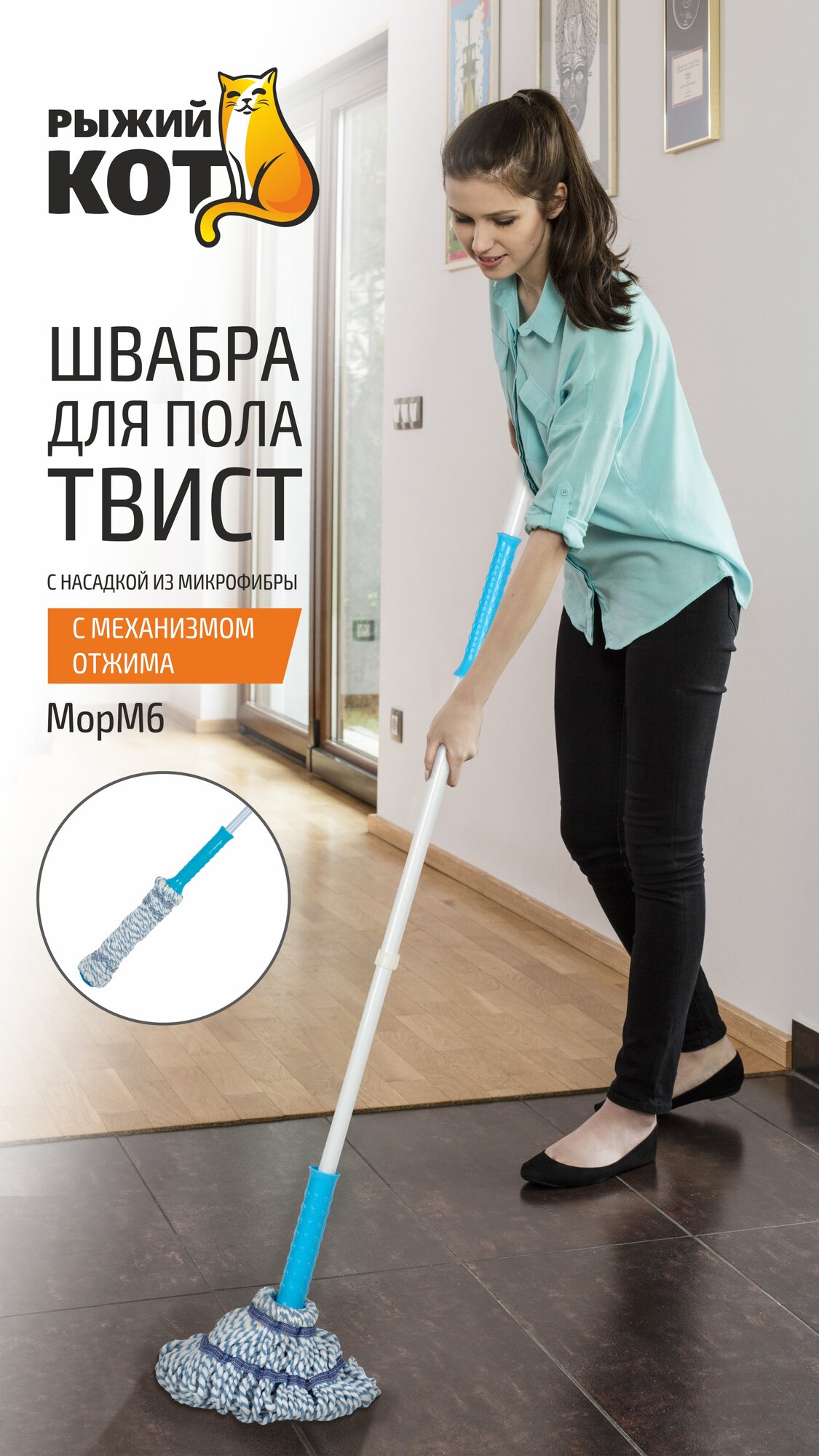 Швабра для пола Твист с насадкой из микрофибры MopM6 Рыжий кот 310306