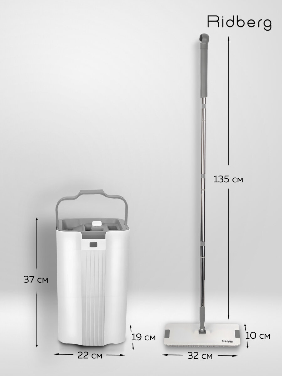 Купить Швабра Ridberg с ведром для отжима Premium Plus (White) / 2 насадки в комплекте