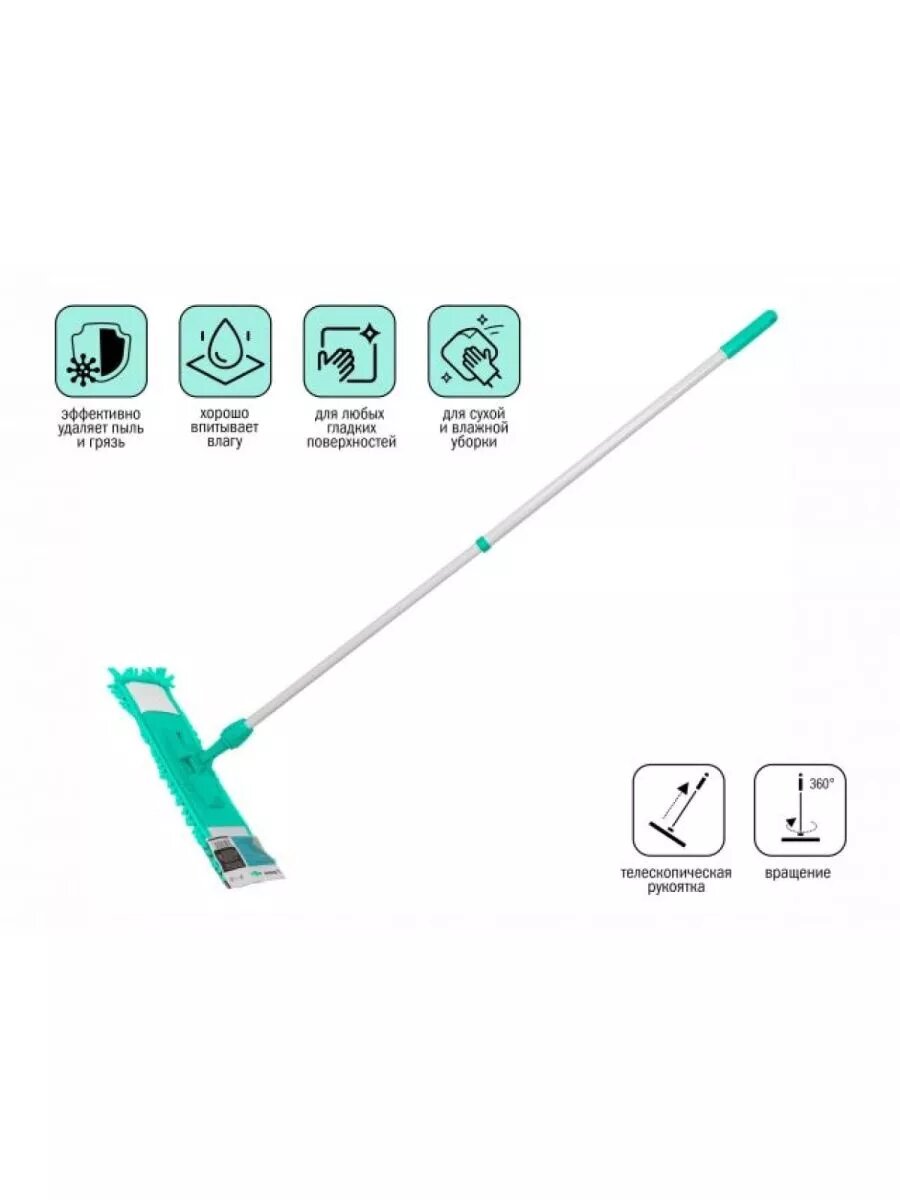 СохранитьШвабра для пола PERFECTO LINEA с насадкой из шенилла бирюзовая (43-400122) интересное:
