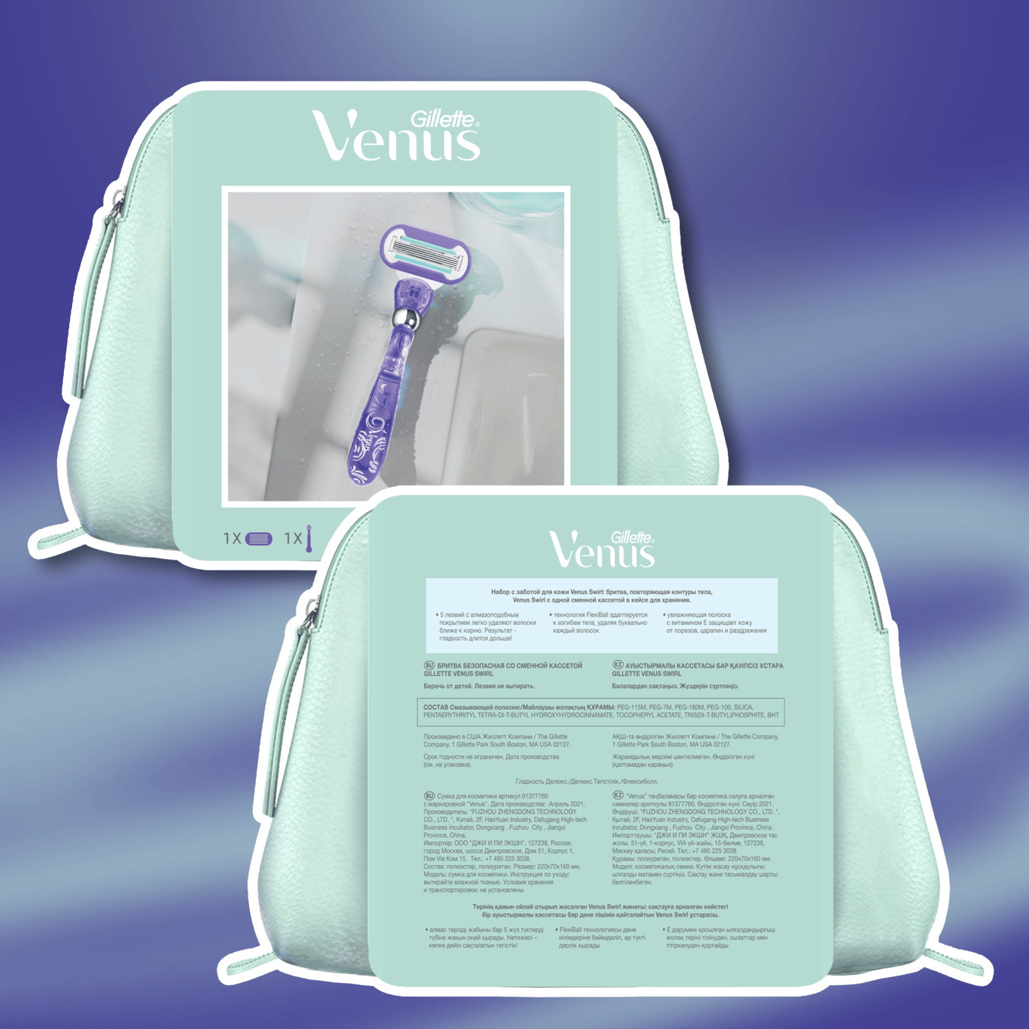 Купить Gillette Venus Подарочный набор в косметичке (Gillette Venus Станок Swirl с 1 сменной каcсетой.)