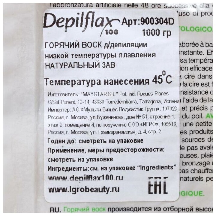 | Подробная комплектация | Воск горячий 1 кг. |