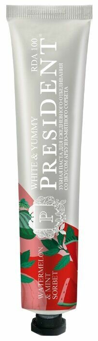 Президент Зубная паста White & Yummy Арбузно-мятный сорбет 75г интересное:
