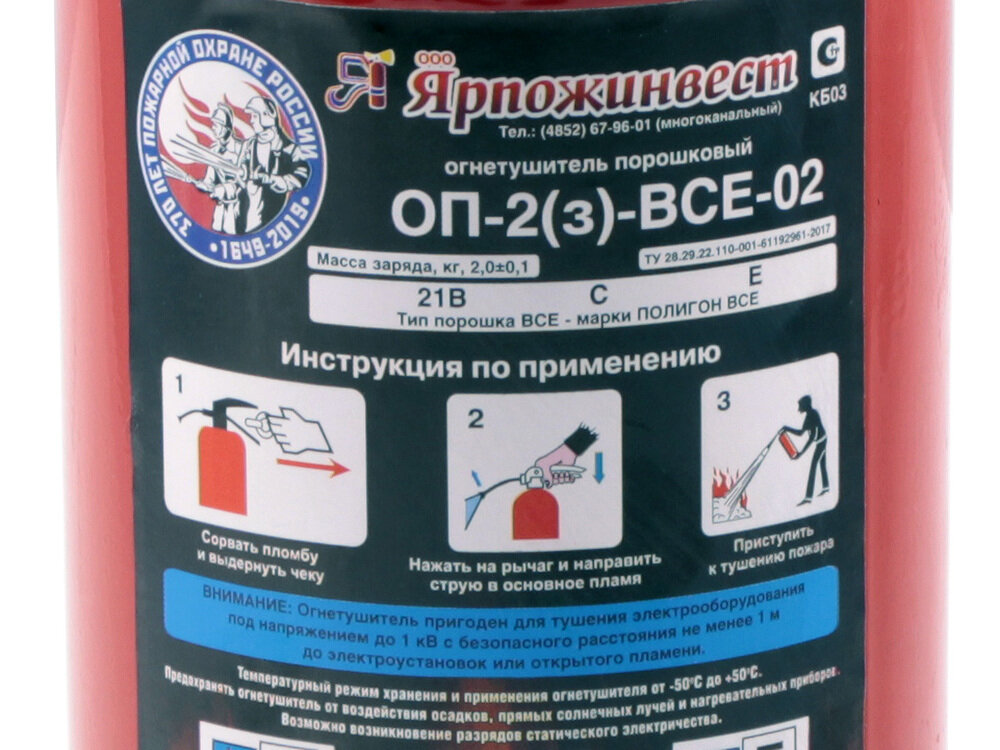 Ниже Вы можете прочитать отзывы на Огнетушитель ОП-2(з) - BCE (2 кг) металл, закачной, порошковый с манометром Ярпожинвест ОП-2(з)-BCE-02, ознакомится с подробными характеристиками, посмотреть интересные обзоры и фотографии на Огнетушитель ОП-2(з) - BCE (2 кг) металл, закачной, порошковый с манометром Ярпожинвест ОП-2(з)-BCE-02.