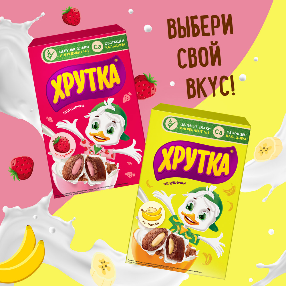 СохранитьГотовый завтрак Хрутка Злаковые подушечки с начинкой со вкусом банана, 220г интересное: