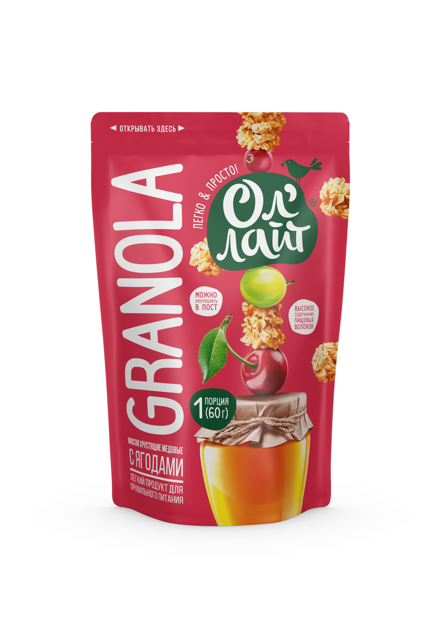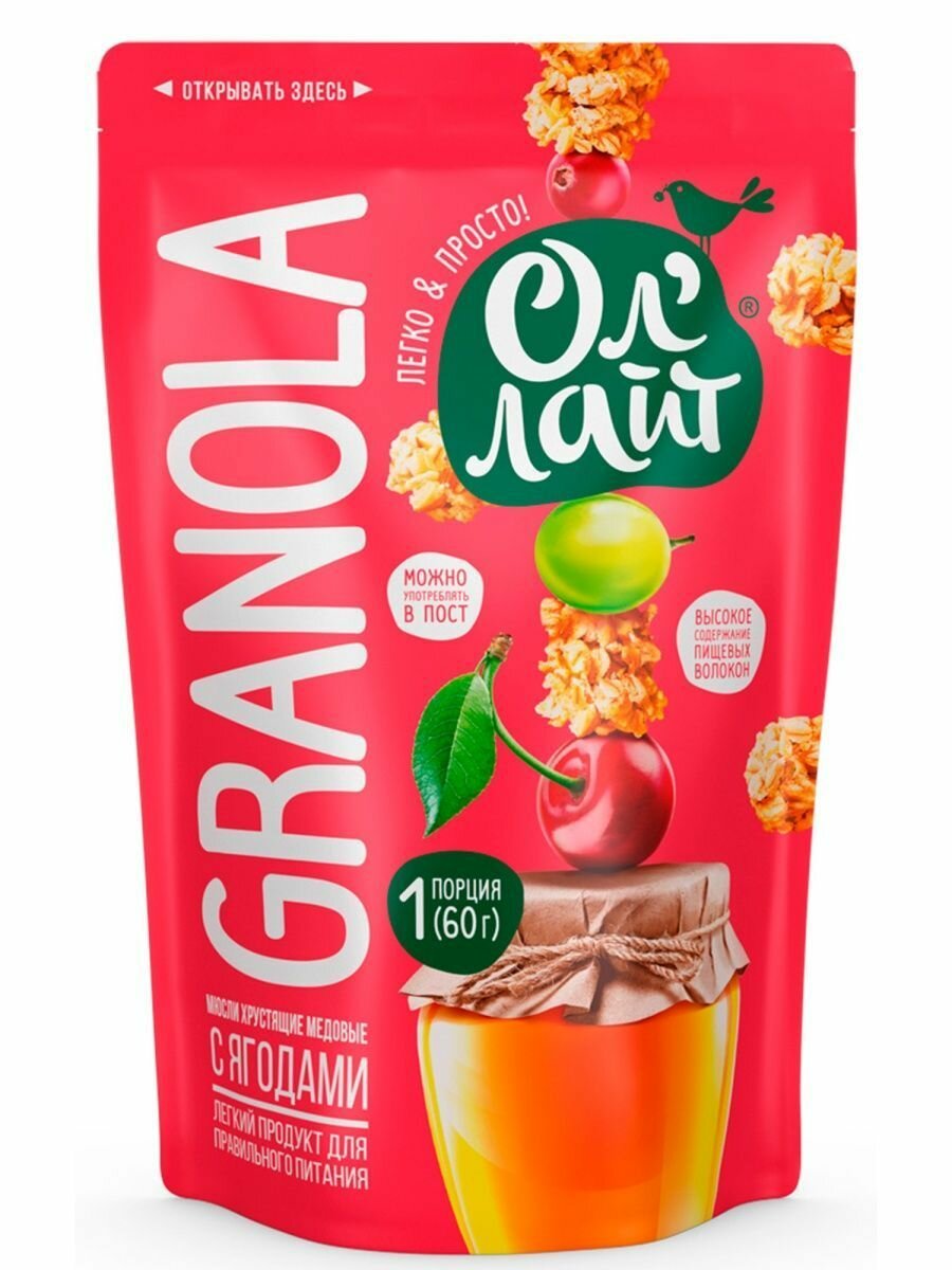 Мюсли Гранола запечённые "Ол'Лайт" медовые с ягодами 6шт по 60г. интересное: