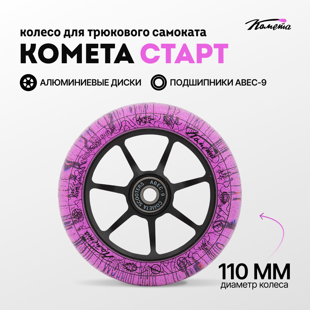 СохранитьКолесо д/сам. Комета Старт Фиолетовый с блёстками / Черный интересное: