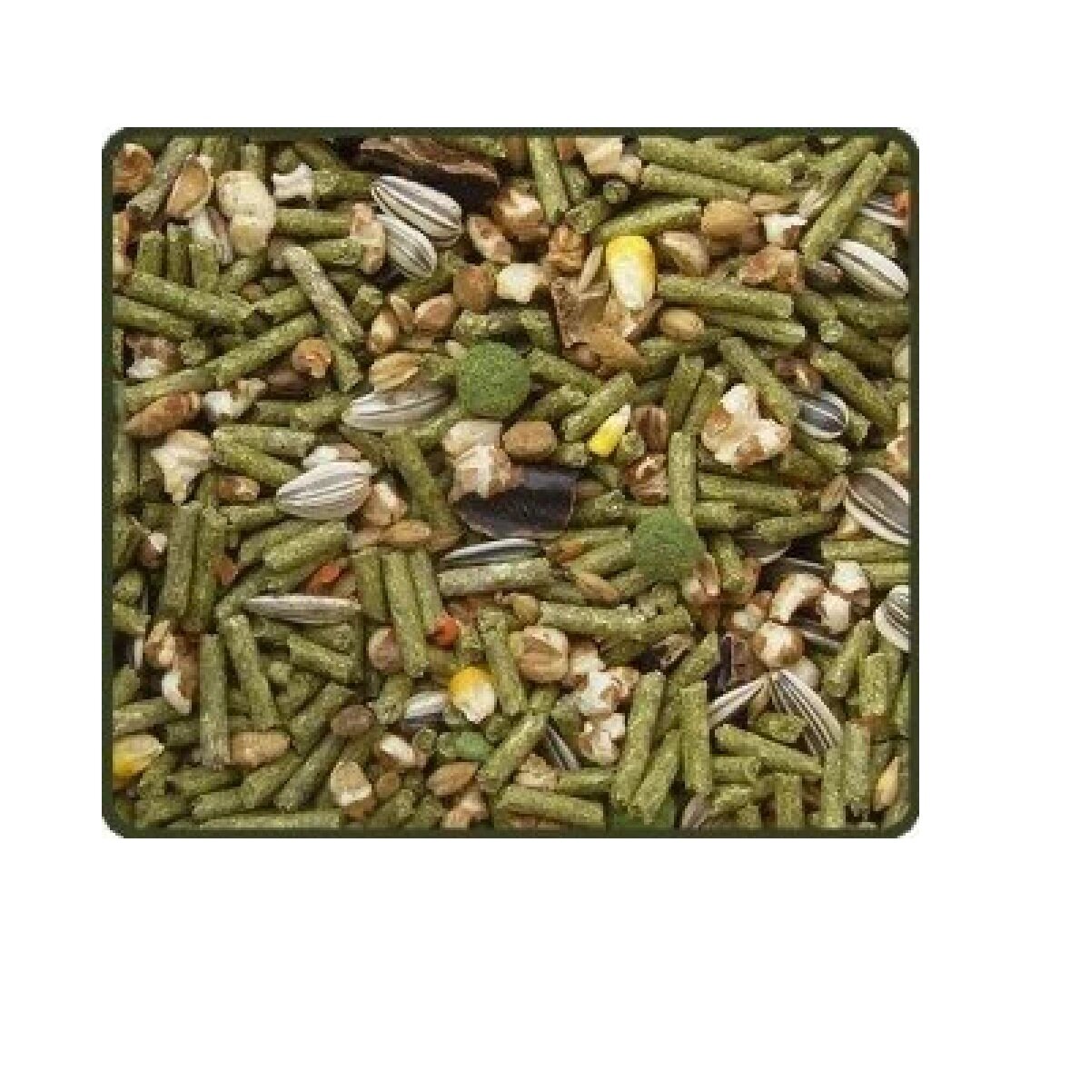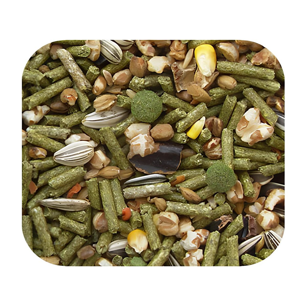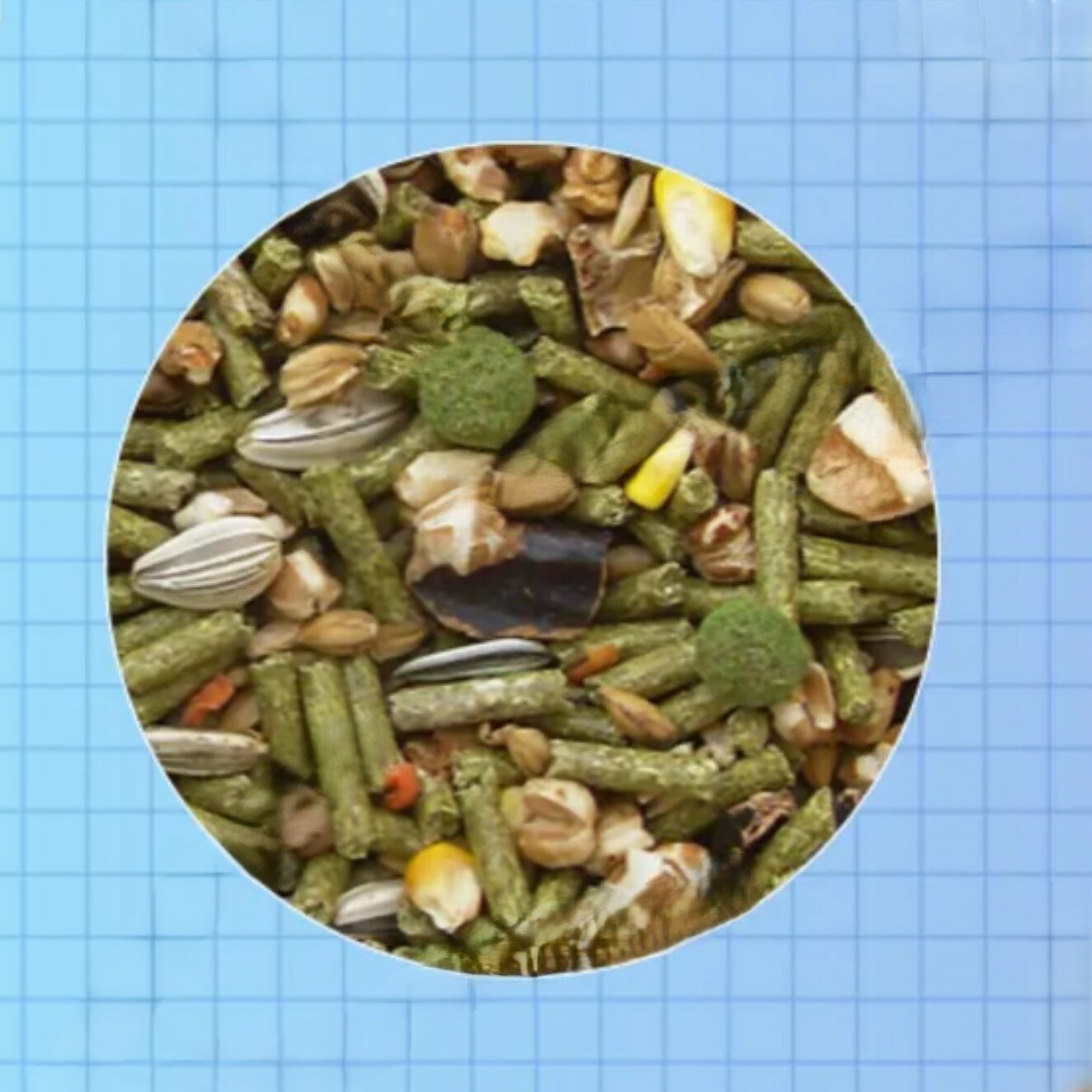 | Состав | травяные гранулы, овсянка, ячмень, пшеница, воздушные зерна, сорго, кукуруза, подсолнечник, конопляное семя, экструдированные гранулы, плоды рожкового дерева, морковь сушеная, капуста сушеная, шиповник, витаминно-минеральный комплекс |