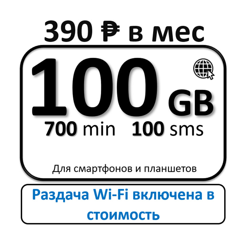 Сим-карта за 390 руб. безлимитный интернет и 100GB 700min для смартфонов и планшетов интересное: