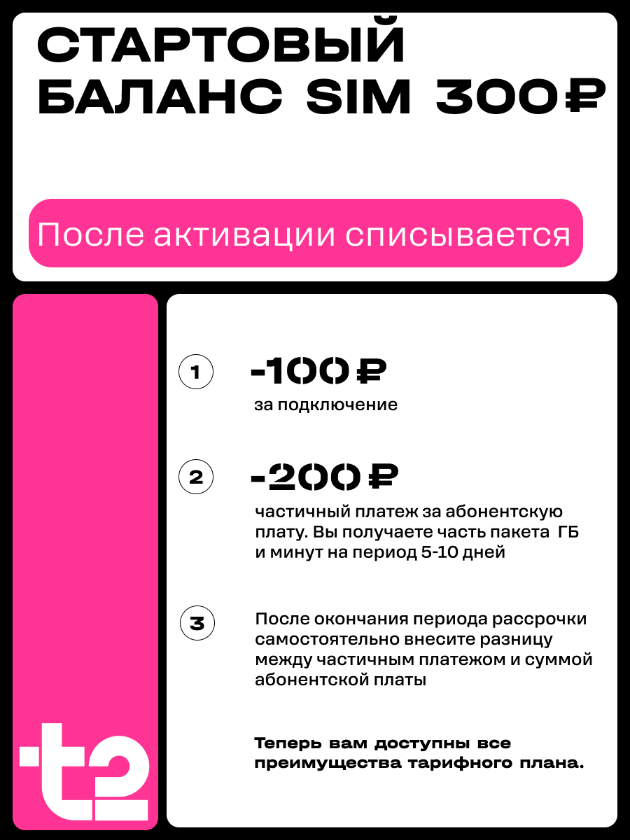 Купить Sim-карта t2 для Свердловской области, баланс 300 рублей