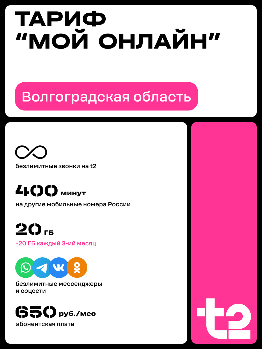 Купить Sim-карта t2 для Волгоградской области, баланс 300 рублей