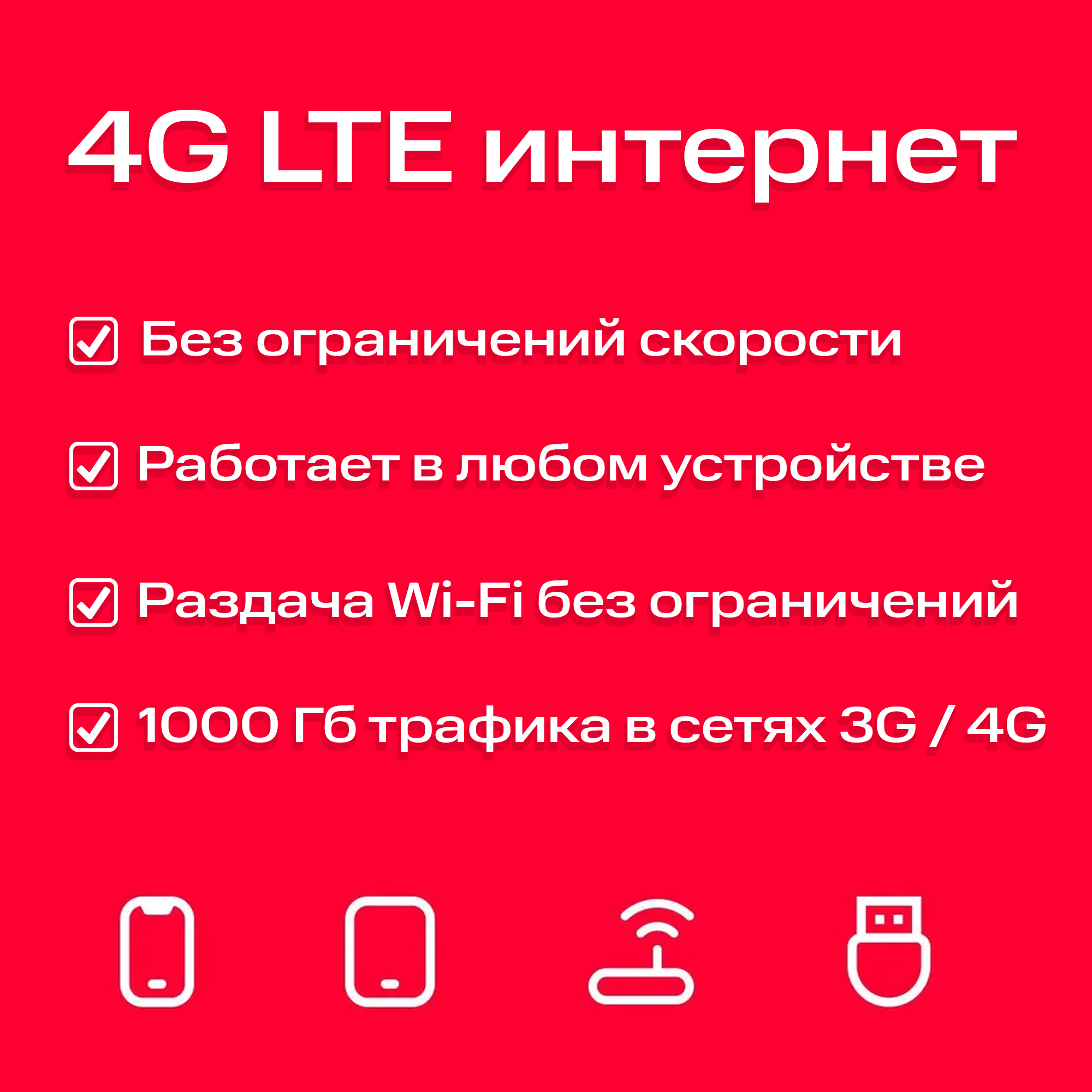 Сим-карта для модема и роутера с практически безлимитным интернетом 3G/4G/4G+ за 1250 ₽ в месяц