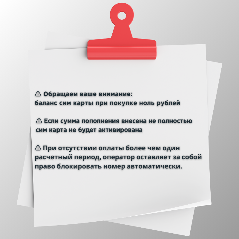 | Дополнительная информация | ⚠️ Внимание! Если оператор решит изменить тариф, то магазин ни как не сможет поменять условия тарифа и не несет ответственность за его действия. |