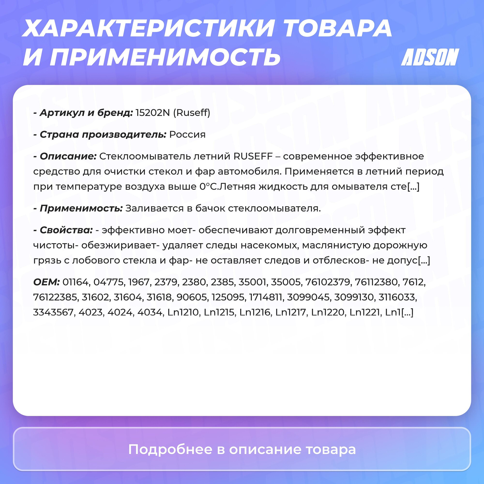 RUSEFF / 15202n / Стеклоомыватель летний (4л) интересное: