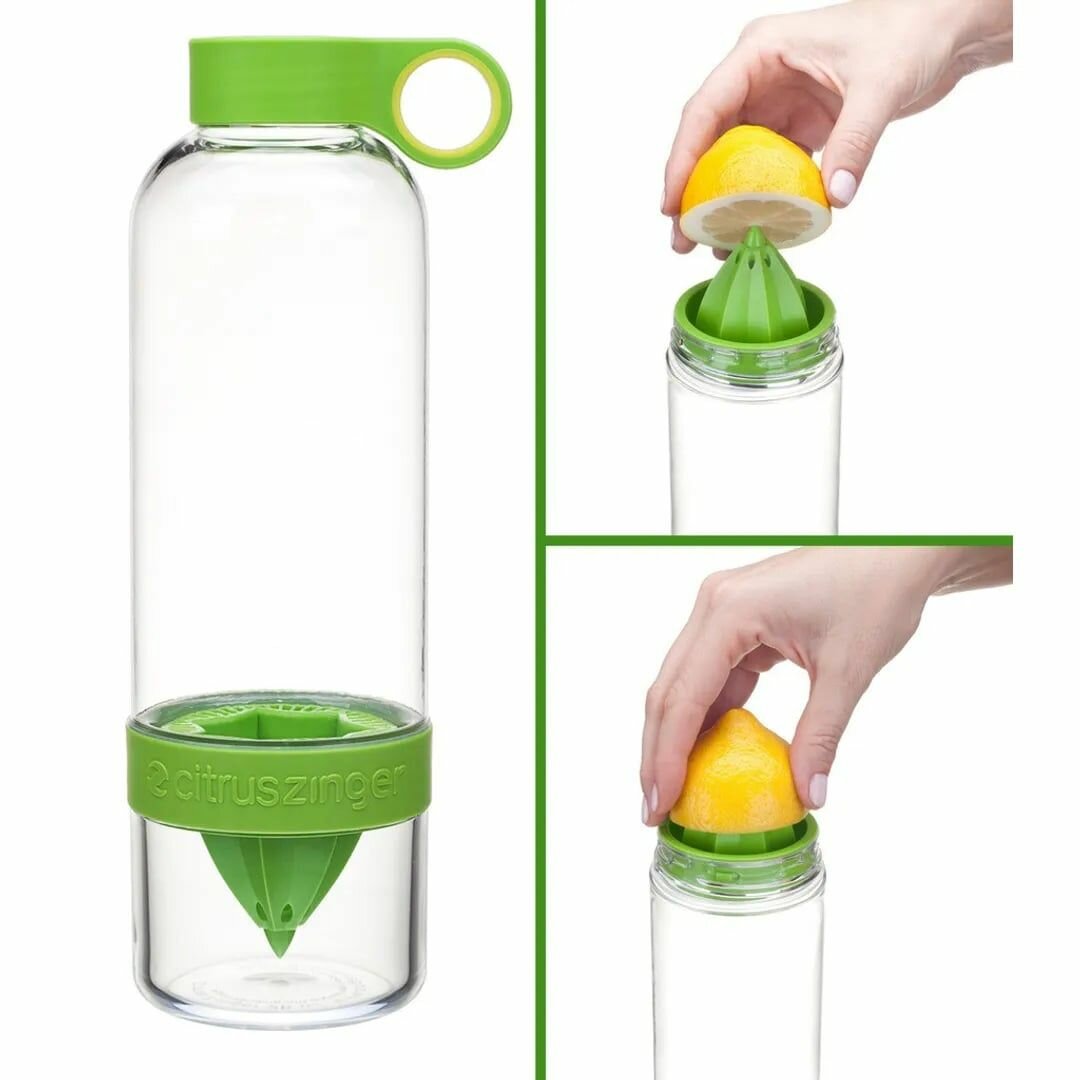 Лимонадная бутылка для приготовления свежевыжатых соков, Бутылка-соковыжималка Citrus Zinger, цвет зеленый