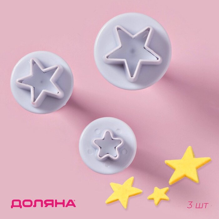 Плунжеры кондитерские Доляна «Звёздочка», набор 3 шт: d=2 см, d=2,2 см, d=2,5 см, пластик, белые интересное: