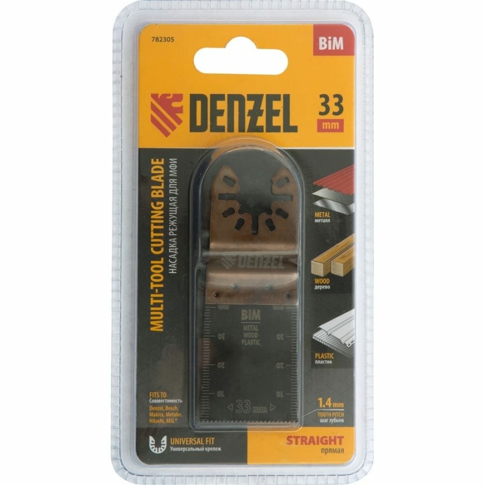 Купить Насадка для МФИ Denzel режущая пазовая прямая BiM, по металлу и дереву, 33 x 1, 4 мм, мелкий зуб 782305