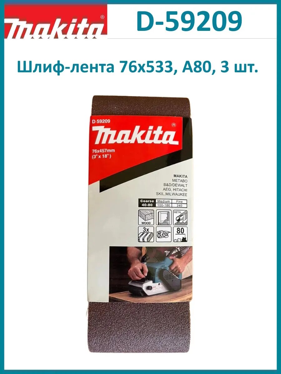 Лента шлифовальная Makita 76х457 мм, A80, 3 шт. (D-59209)