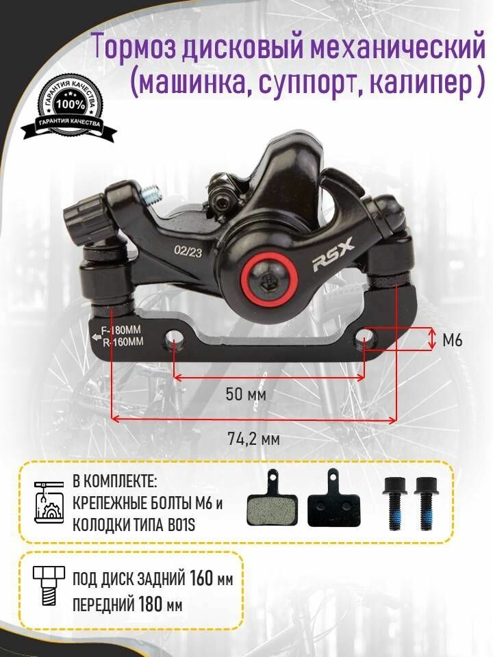 Машинка - Тормоз дисковый механический 160/180 (суппорт) для велосипеда в комплекте колодки под B01S 3122613-18 интересное: