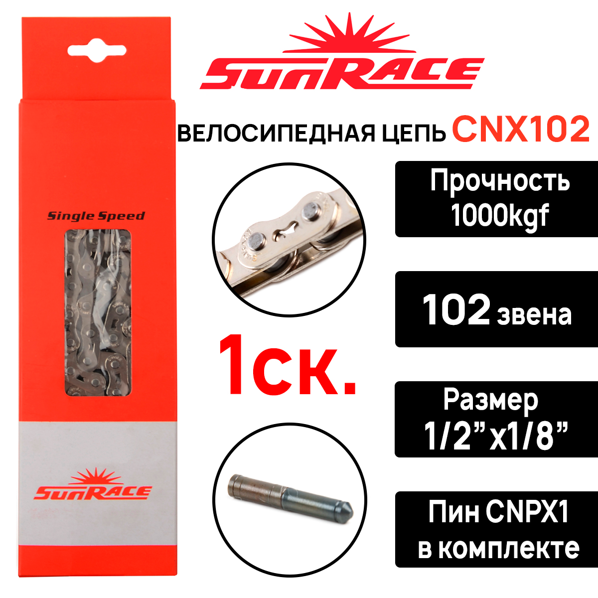 Купить Цепь для велосипеда SunRace CNХ 102, BMX/FIXED/SINNGLE SPEED, 1 передача 102 зв, 1/2"x1/8", серебристый (Оригинал)