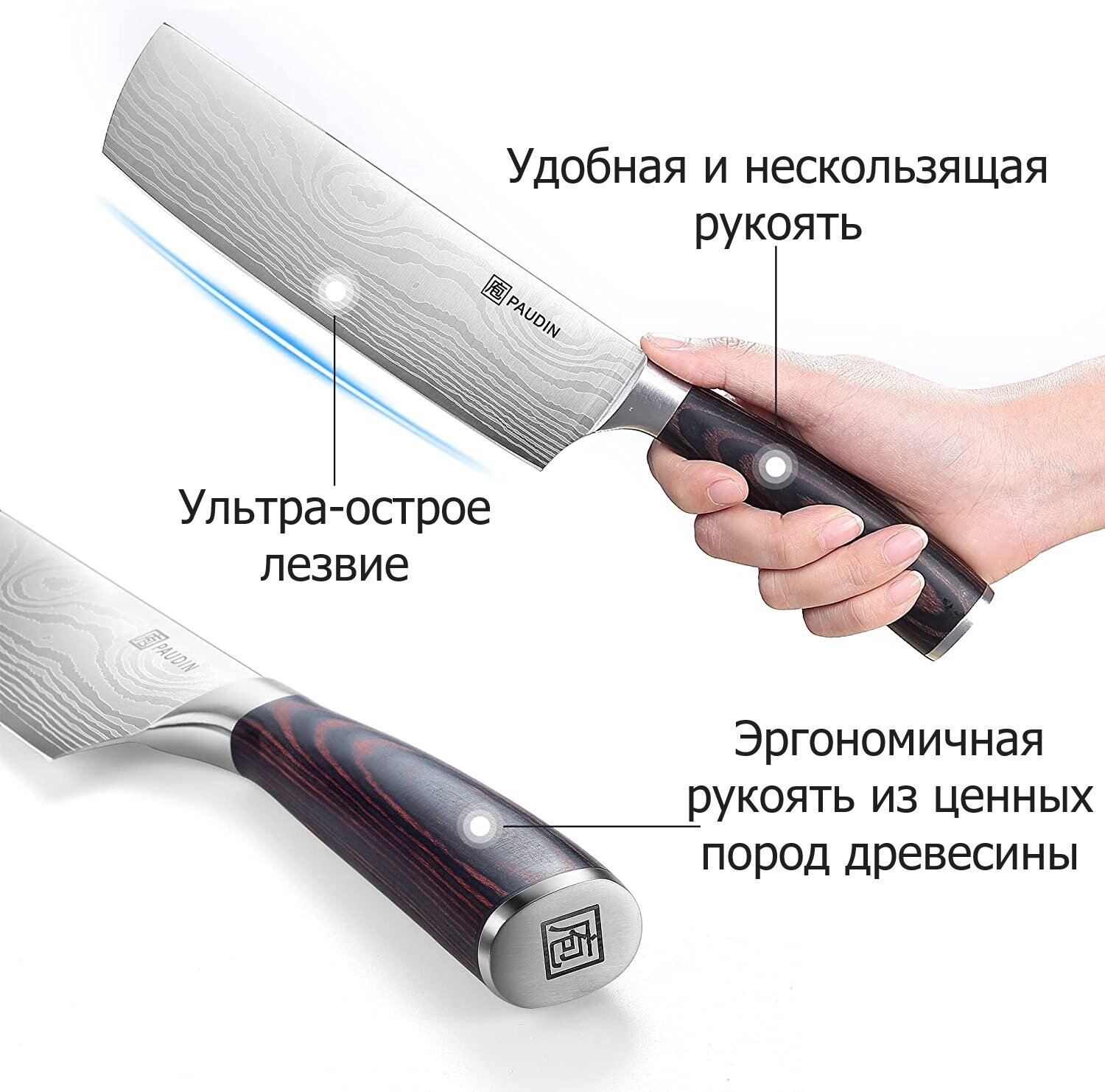 PAUDIN Pro Нож кухонный накири тесак топорик лезвие 17 см